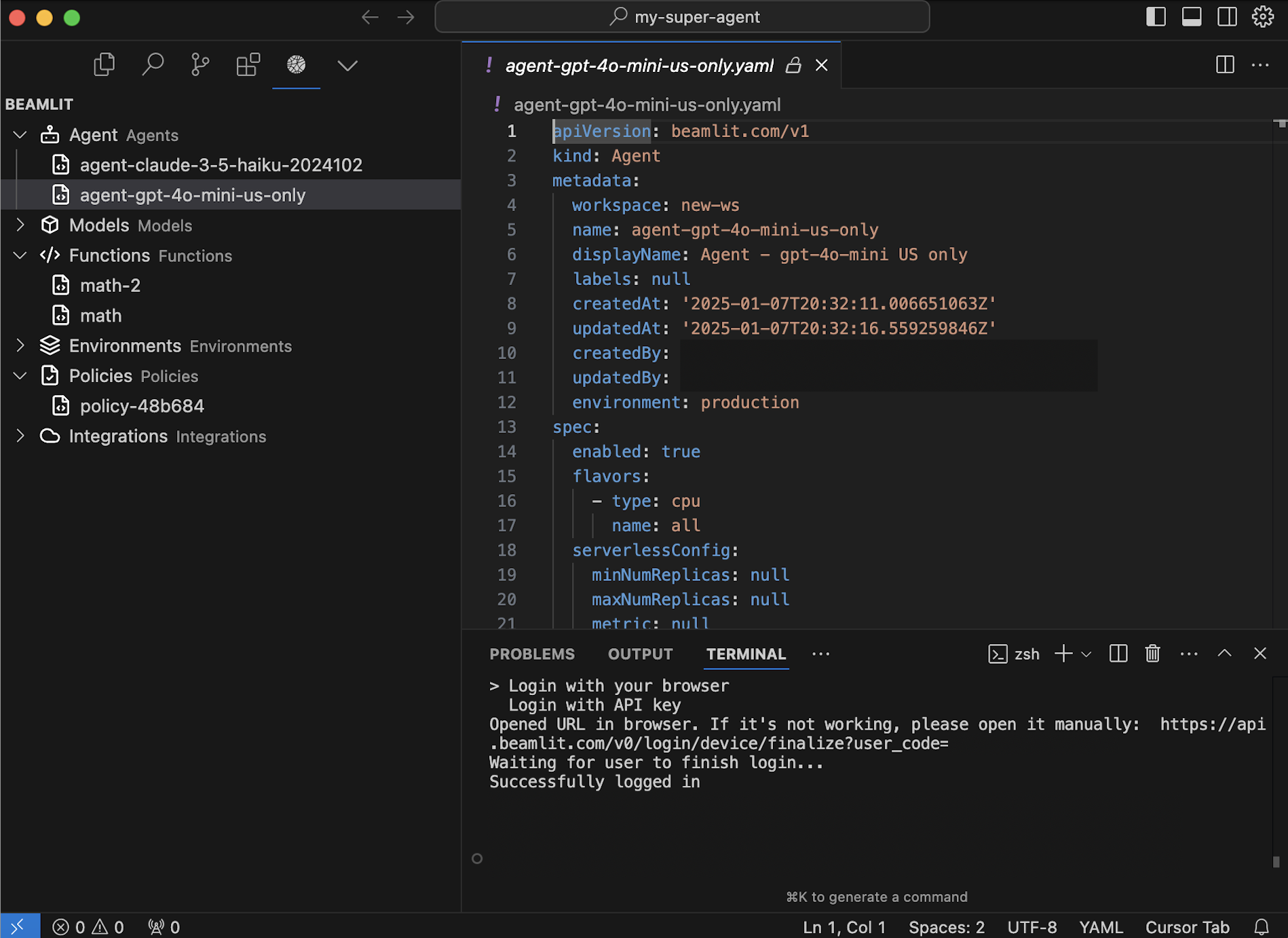 Beamlit extension for VScode